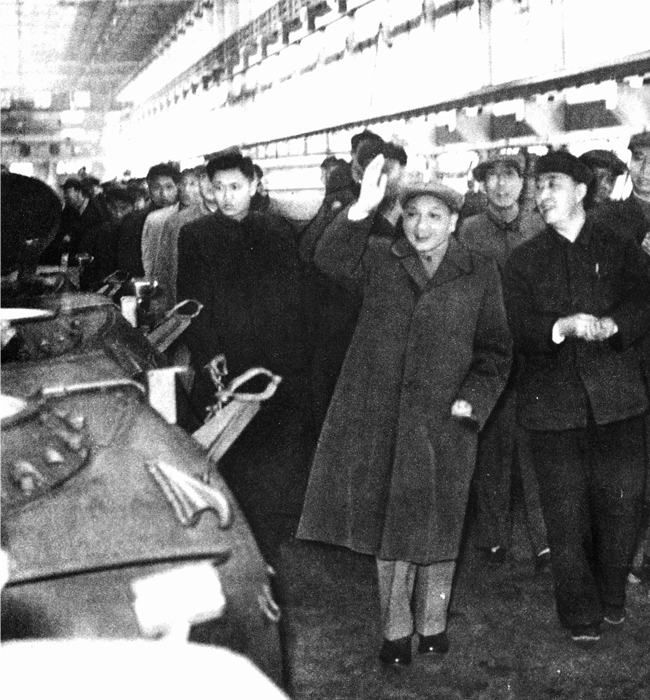 1964年4月8日中共中央總書記鄧小平視察617廠時在總裝車間向干部職工招手致意