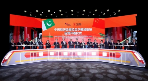 10月25日,巴基斯坦拉合爾軌道交通橙線項目在中國北京和巴基斯坦旁遮普省首府拉合爾市,以視頻連線方式隆重舉行運營開通儀式,這標志著巴基斯坦駛入地鐵時代。國家發展和改革委員會秘書長趙辰昕,中國兵器工業集團有限公司董事長焦開河、總經理劉大山、副總經理植玉林,巴基斯坦駐華大使莫恩·烏·哈克、巴基斯坦旁遮普省首席部長薩爾達爾·烏斯曼·布茲達爾、中國駐巴基斯坦拉合爾總領事龍定斌等出席開通儀式。