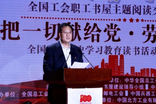 活動由全總宣教部、中國國防郵電工會、中國兵器工業集團有限公司黨群工作部、中國工人出版社共同承辦,中國北方工業有限公司協辦。來自中華全國總工會、全國工會職工書屋建設領導小組成員、部分全國工會職工書屋公益代言人,各全國產業工會、全總各部門負責同志,部分省市總工會副主席、宣教部長,兵器工業集團一線勞模工匠、職工代表等參加活動。 |