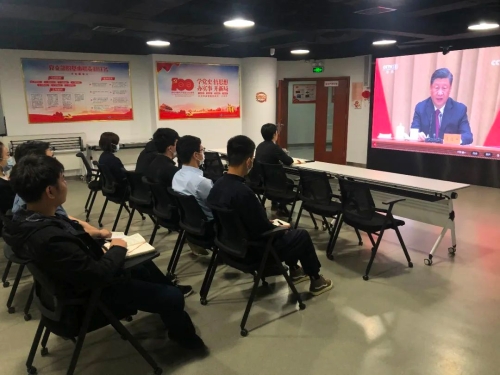 ▲夜視院集團(tuán)團(tuán)委組織團(tuán)員青年收看現(xiàn)場(chǎng)直播