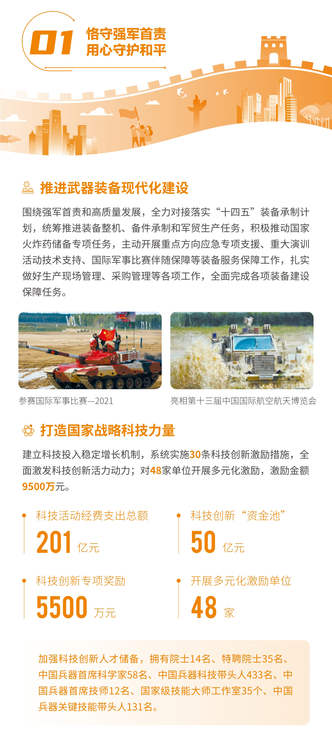 近日,兵器工業(yè)集團正式發(fā)布第十三份年度社會責(zé)任報告——《中國兵器工業(yè)集團有限公司2021年社會責(zé)任報告》,以“用心守護和平、用力爭創(chuàng)一流、用情溫暖社會”為主題,從恪守強軍首責(zé)、服務(wù)經(jīng)濟建設(shè)、共創(chuàng)美好生活三個維度,向社會全面披露2021年度履責(zé)實踐和履責(zé)業(yè)績。《報告》連續(xù)第三年獲得中國企業(yè)社會責(zé)任報告評級專家委員會“五星佳”評級,兵器工業(yè)集團成為軍工行業(yè)唯一連續(xù)11年獲得五星及五星佳最高評級的企業(yè)。 一圖解碼兵器工業(yè)的“責(zé)任力量” |