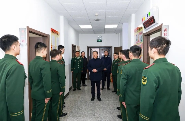 周治平走訪了作戰(zhàn)勤務(wù)值班室、營房等,詳細(xì)了解春節(jié)期間勤務(wù)安排、生活保障和防寒保暖措施等情況,對(duì)官兵的堅(jiān)守、付出和奉獻(xiàn)予以高度贊揚(yáng)。周治平表示,執(zhí)勤崗位責(zé)任重大、工作辛苦,執(zhí)勤武警官兵始終牢記職責(zé)、忠誠履職、紀(jì)律嚴(yán)明、作風(fēng)優(yōu)良,以實(shí)際行動(dòng)踐行了軍民魚水情、軍地一家親,贏得了兵器干部職工的一致好評(píng),為兵器工業(yè)集團(tuán)改革發(fā)展穩(wěn)定工作作出了重要貢獻(xiàn)。集團(tuán)公司有關(guān)部門要強(qiáng)化服務(wù)保障、筑牢軍地情誼,用心用情用力為官兵創(chuàng)造良好的學(xué)習(xí)生活訓(xùn)練條件。 執(zhí)勤武警負(fù)責(zé)人衷心感謝集團(tuán)公司一直以來的關(guān)心支持,表示廣大官兵將認(rèn)真踐行武警部隊(duì)優(yōu)良傳統(tǒng),聽黨指揮、不辱使命、刻苦訓(xùn)練、增強(qiáng)本領(lǐng),以更加飽滿的熱情投入到新的一年執(zhí)勤工作中,為維護(hù)兵器工業(yè)保衛(wèi)安全穩(wěn)定貢獻(xiàn)更大力量。(綜合管理部)